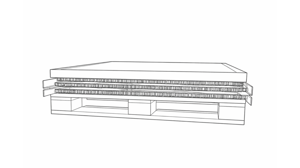 La leggerezza strutturale si traduce in minori costi di trasporto, grazie a un volume ottimizzato e a un peso inferiore, con un impatto diretto anche sulla riduzione delle emissioni di CO₂. Inoltre, l’assenza del trattamento ISPM-15 contribuisce a rendere il processo produttivo più sostenibile e rapido.